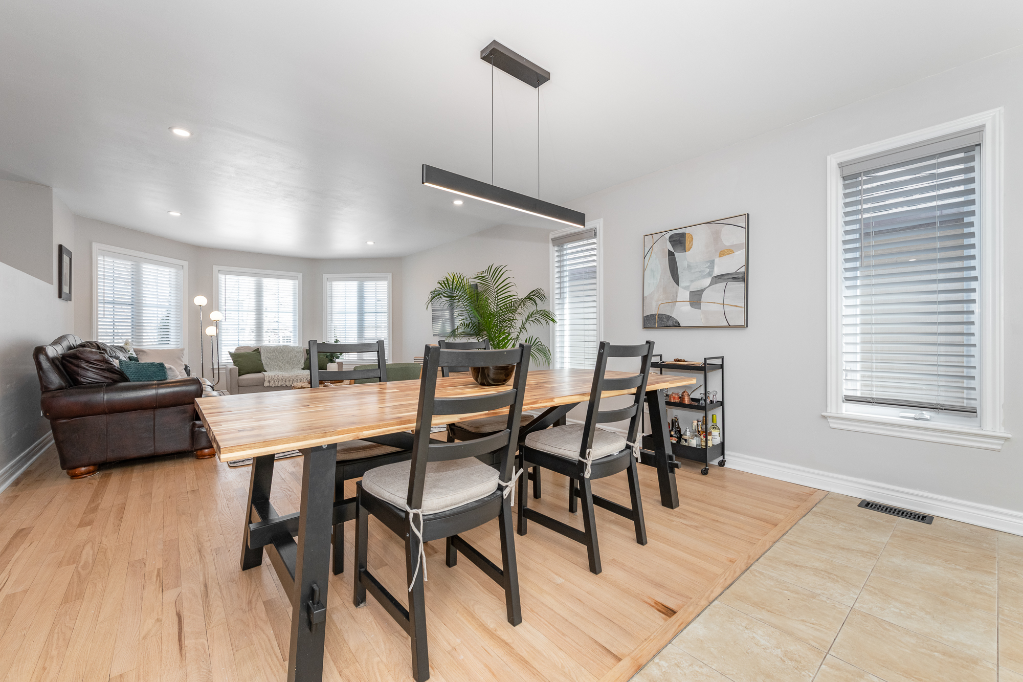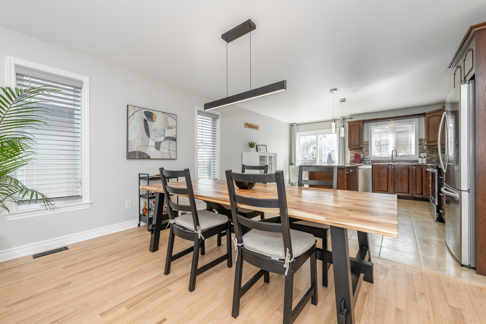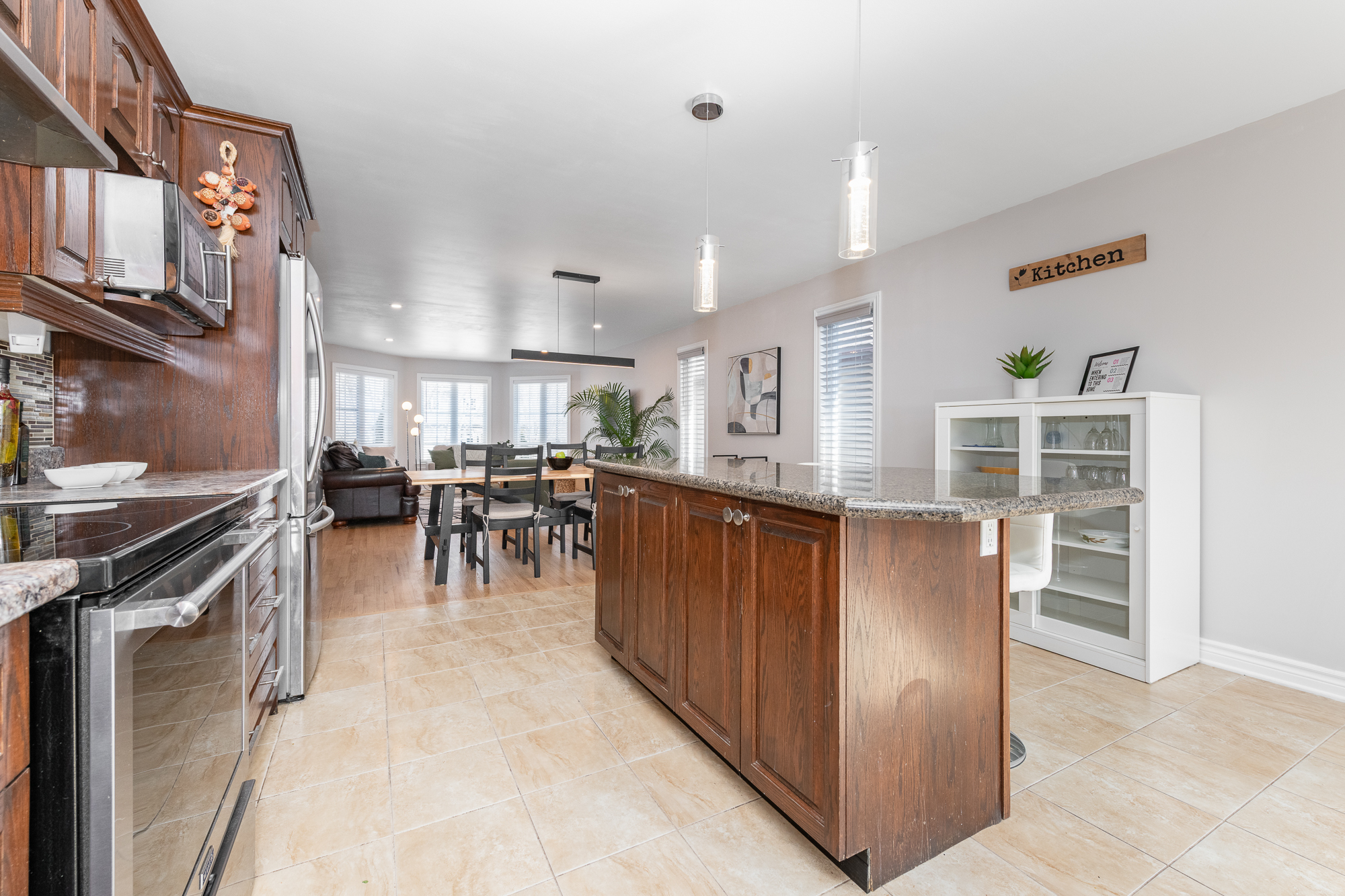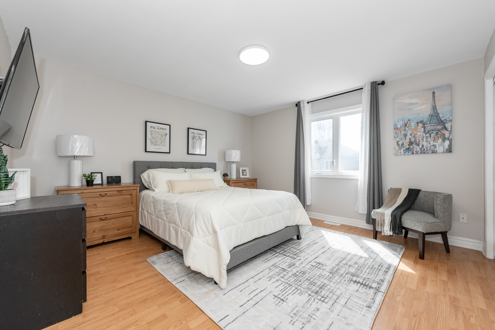 This raised bungalow offers lots of space and the perfect blend of style, comfort, and functionality with 5 bedrooms (three on the main floor and two on the lower level) and three full bathrooms-including a spacious primary 4-piece en-suite. Enjoy an open-concept layout with lots of windows, beautiful lighting, modern railings, refinished hardwood floors and freshly painted walls in a stylish designer colour. The bright kitchen features stainless steel appliances, a granite island, and direct access to a private deck and large fenced backyard-perfect for entertaining. The fully finished basement features a spacious family room and recreation area with an electric fireplace. It also includes two generously sized bedrooms, a modern full bathroom, and a beautifully designed laundry room. Enjoy a convenient over-sized heated garage with a workbench.