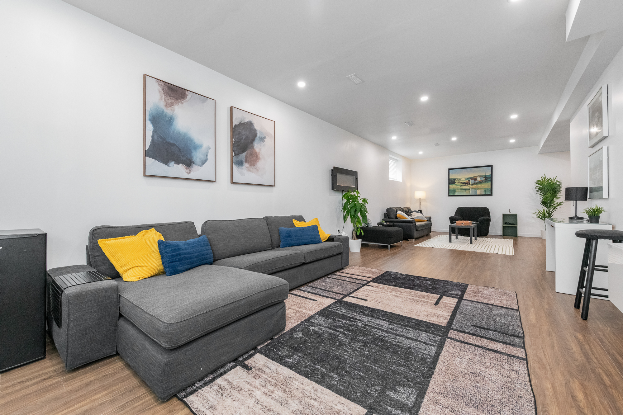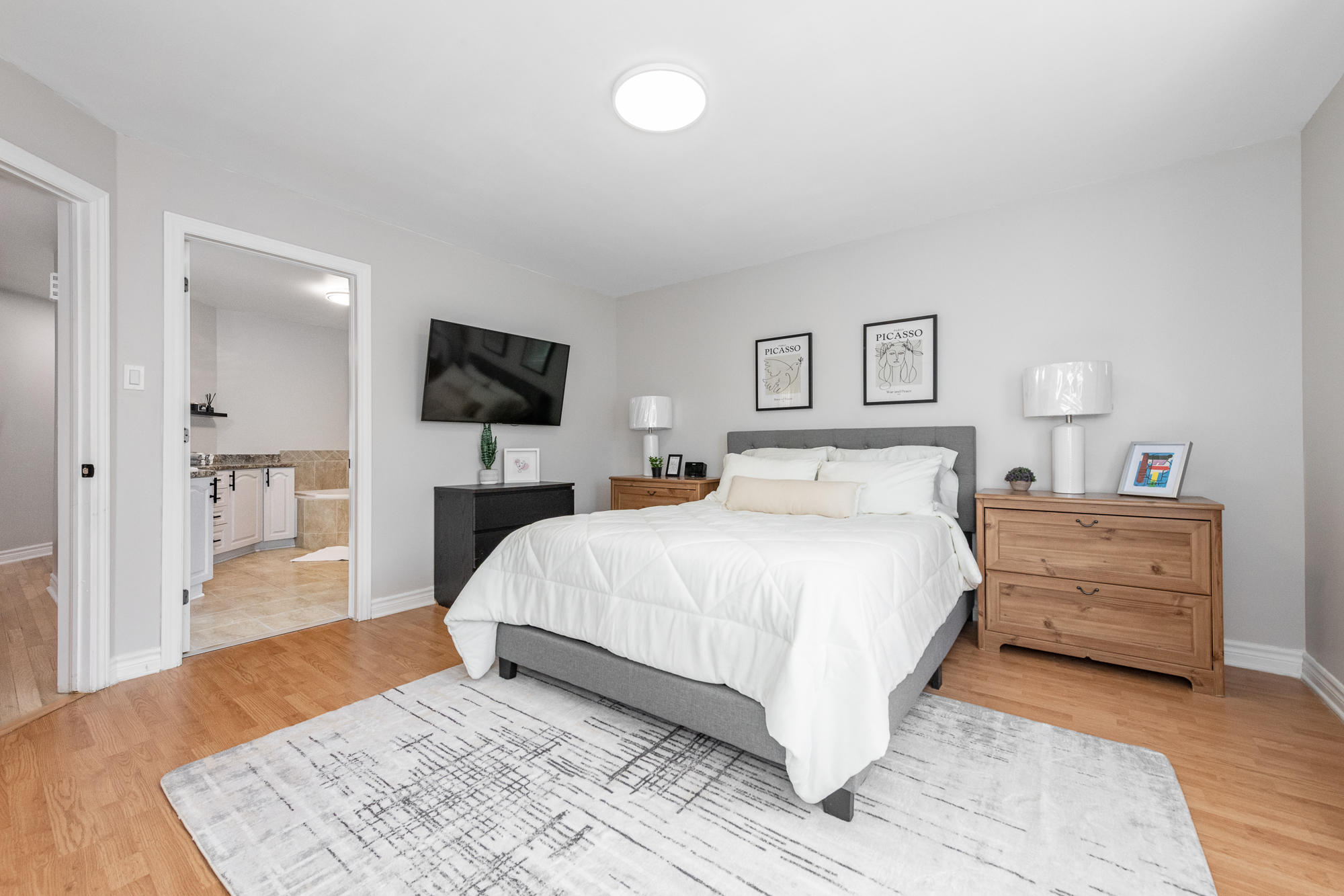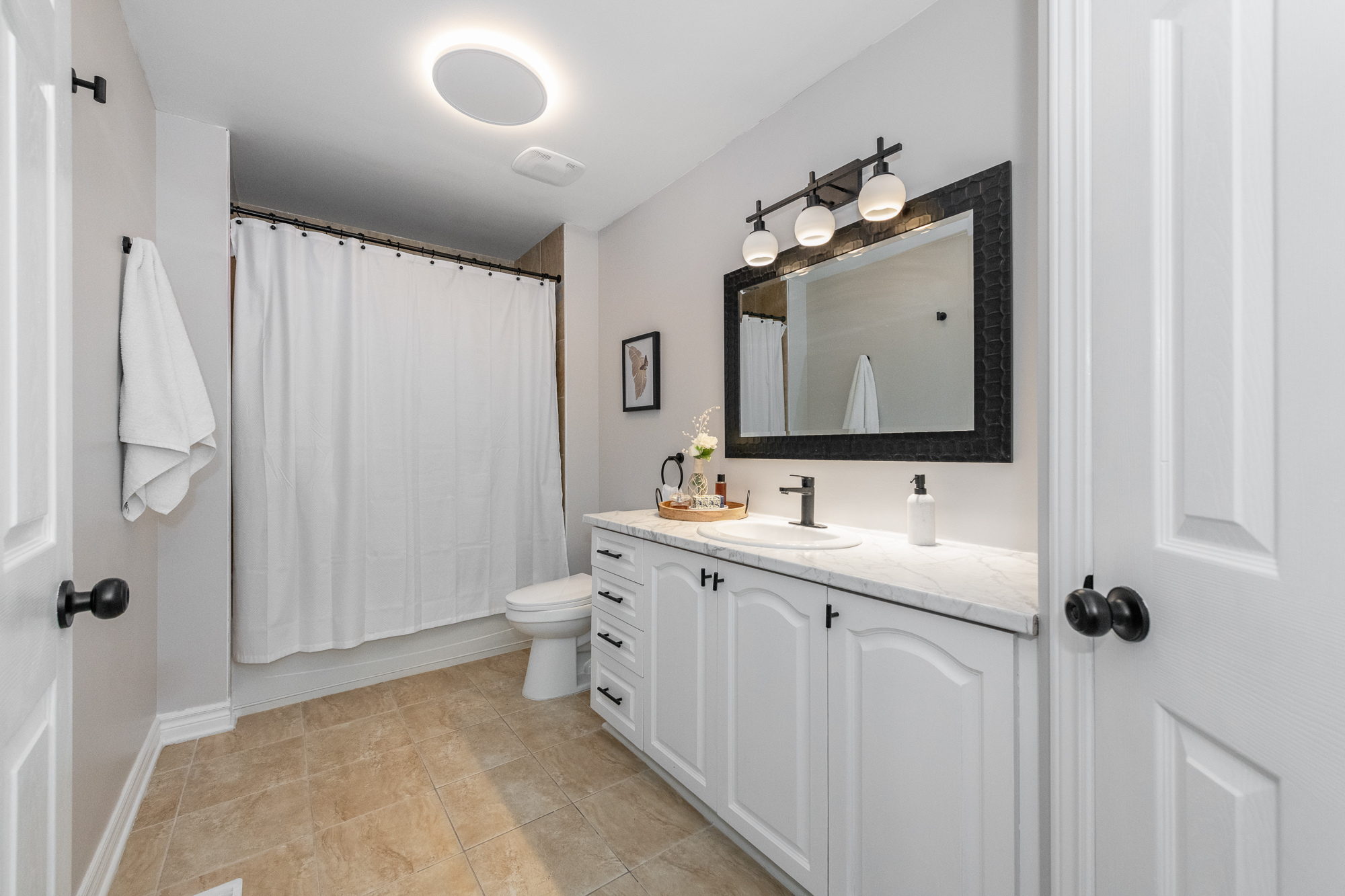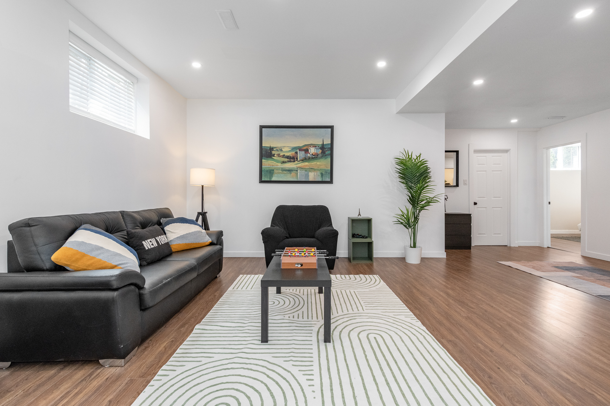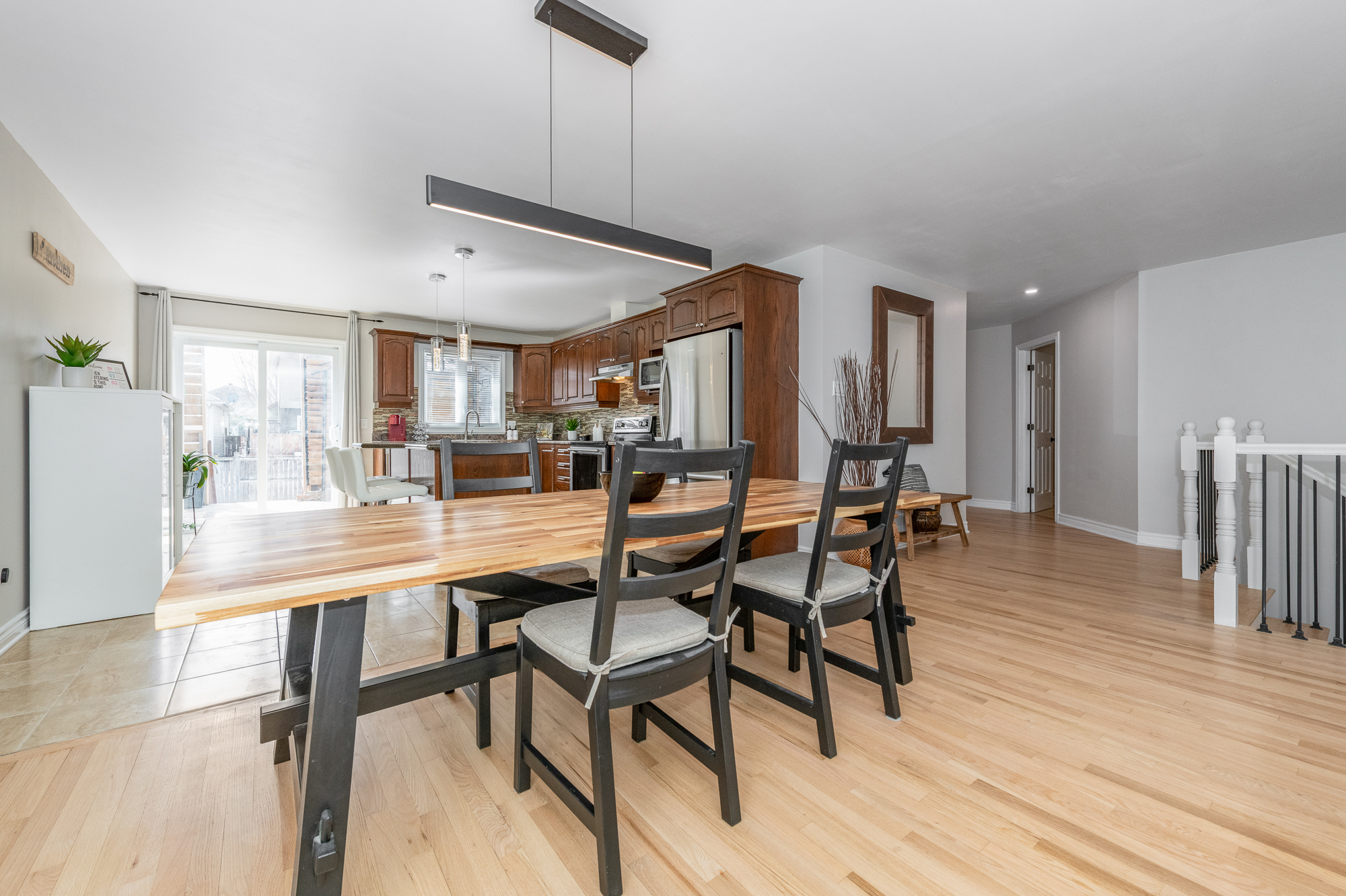 This raised bungalow offers lots of space and the perfect blend of style, comfort, and functionality with 5 bedrooms (three on the main floor and two on the lower level) and three full bathrooms-including a spacious primary 4-piece en-suite. Enjoy an open-concept layout with lots of windows, beautiful lighting, modern railings, refinished hardwood floors and freshly painted walls in a stylish designer colour. The bright kitchen features stainless steel appliances, a granite island, and direct access to a private deck and large fenced backyard-perfect for entertaining. The fully finished basement features a spacious family room and recreation area with an electric fireplace. It also includes two generously sized bedrooms, a modern full bathroom, and a beautifully designed laundry room. Enjoy a convenient over-sized heated garage with a workbench.