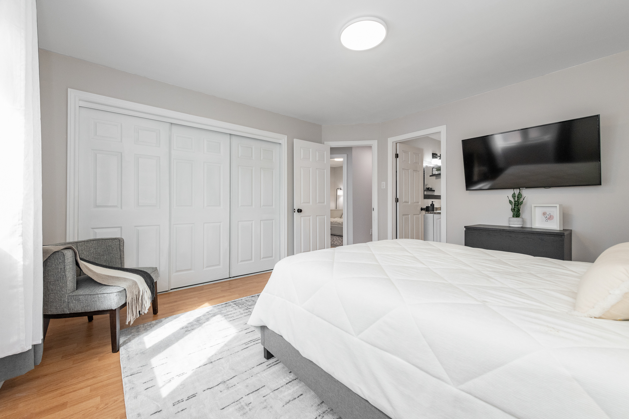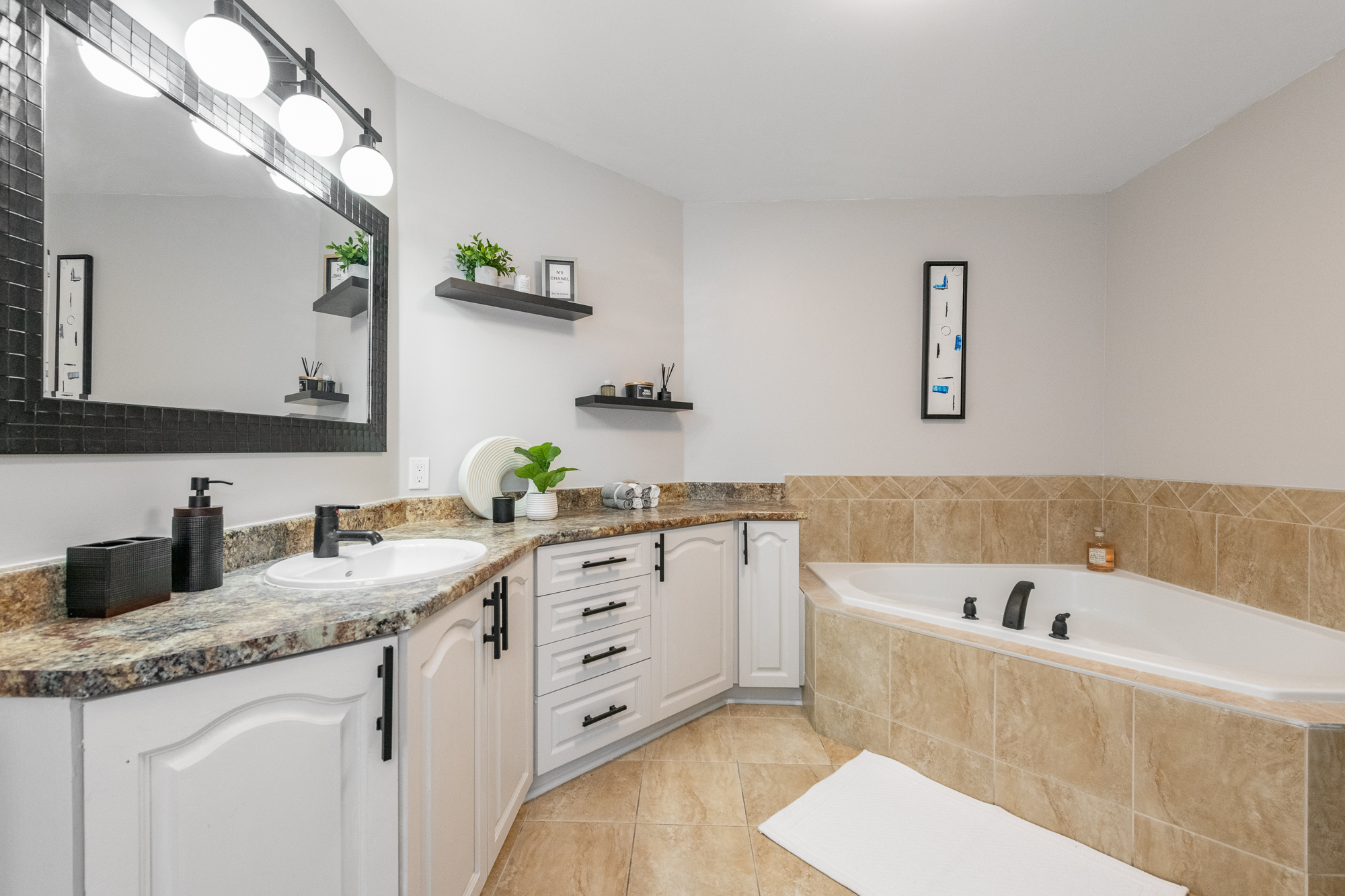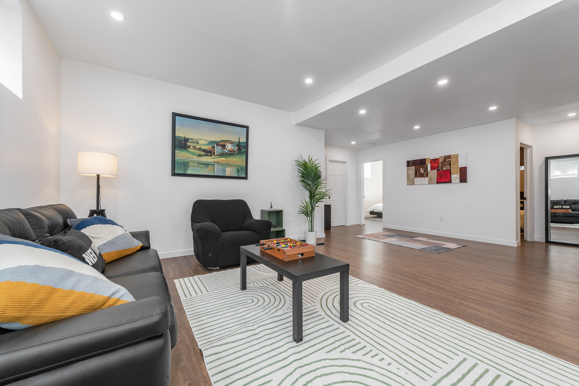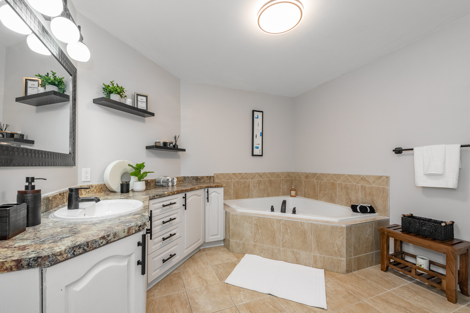 This raised bungalow offers lots of space and the perfect blend of style, comfort, and functionality with 5 bedrooms (three on the main floor and two on the lower level) and three full bathrooms-including a spacious primary 4-piece en-suite. Enjoy an open-concept layout with lots of windows, beautiful lighting, modern railings, refinished hardwood floors and freshly painted walls in a stylish designer colour. The bright kitchen features stainless steel appliances, a granite island, and direct access to a private deck and large fenced backyard-perfect for entertaining. The fully finished basement features a spacious family room and recreation area with an electric fireplace. It also includes two generously sized bedrooms, a modern full bathroom, and a beautifully designed laundry room. Enjoy a convenient over-sized heated garage with a workbench.